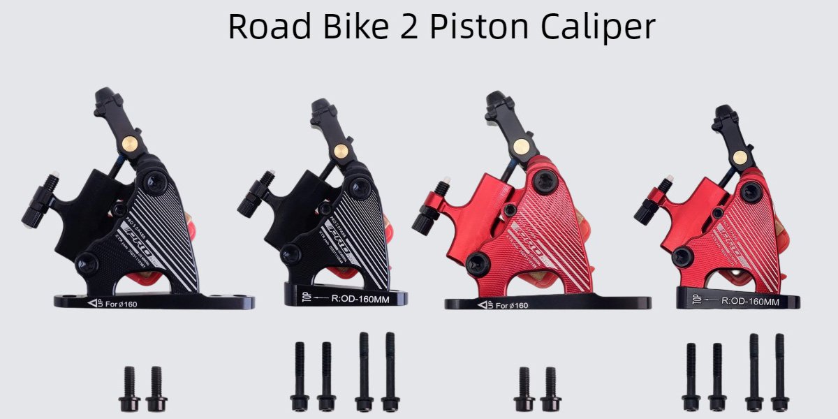 IIIPRO road bike hydraulic brake 2 pistons for flat bar road bike use, Full CNC Process Aluminum Ultra Lightweight Ceramic Brake Pad Super Heat Dissipation Sink Internal Routing External